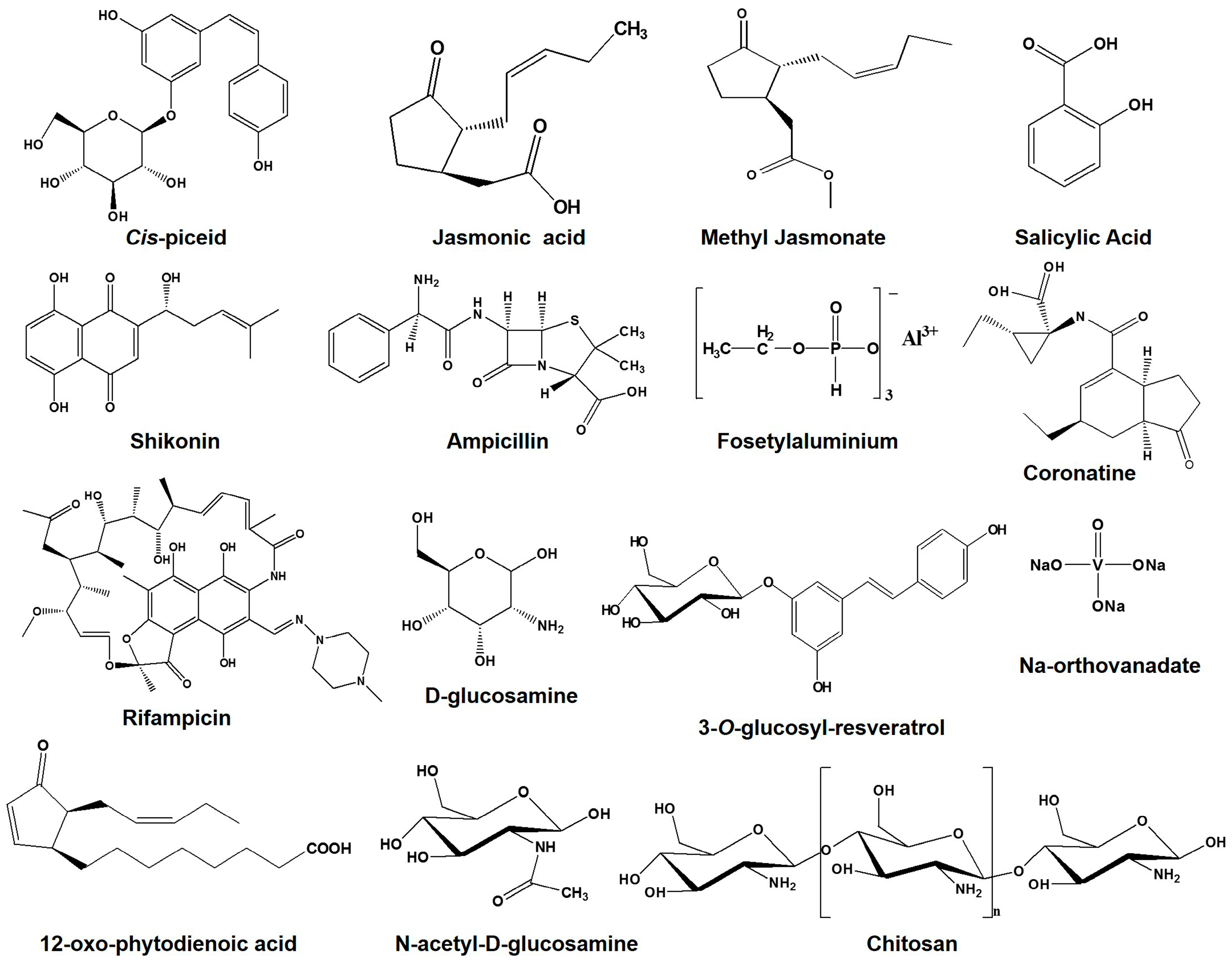 Molecular structure of different compounds or elicitors mentioned in this review.
