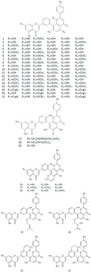 - López-Sáez, J.A.; Pérez-Alonso, M.J.; Negueruela, A.V. The biflavonoid pattern of Selaginella selaginoides. Z. Naturforsch. C 1994, 49, 265–266. [Google Scholar]