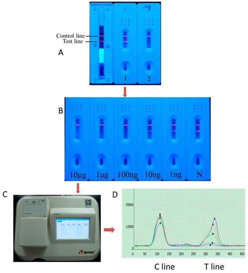 - Sakamoto, S.; Yusakul, G.; Pongkitwitoon, B.; Tanaka, H.; Morimoto, S. Colloidal Gold-Based Indirect Competitive Immunochromatographic Assay for Rapid Detection of Bioactive Isoflavone Glycosides Daidzin and Genistin in Soy Products. Food Chem. 2016, 194, 191–195. [Google Scholar] [CrossRef] [PubMed]