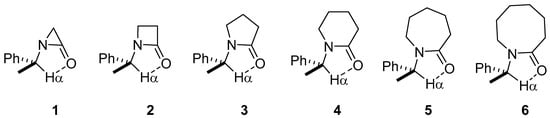 If we assumed the presence of a C−Hα···O hydrogen contact, then a bicycle-type molecular structure, as shown in Figure 1, must be formed. Therefore, a set of non-substituted lactams derived from α-methylbenzylamine, going from three to eight-membered rings (1–6) were modeled.