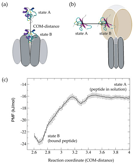 - Park, S.; Schulten, K. Calculating potentials of mean force from steered molecular dynamics simulations. J. Chem. Phys. 2004, 120, 5946–5961. [Google Scholar] [CrossRef] [PubMed]