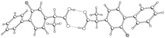 Hydrogen bonded dimer of flurbiprofen (Form 1) based on the published X-ray structure [106], but with adjustment of the hydrogen atoms as obtained by computation. Reprinted, with permission, from [105]. Copyright 2005, The Royal Society of Chemistry.