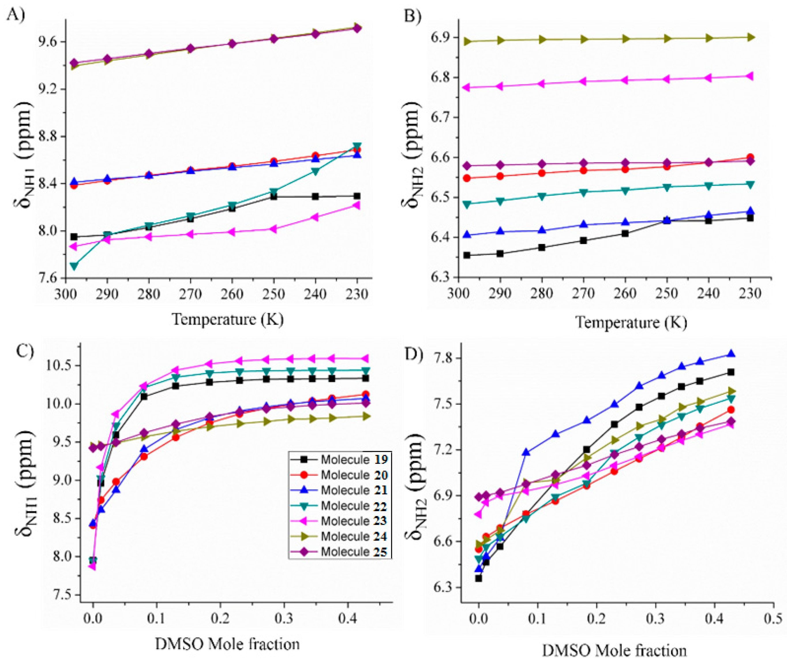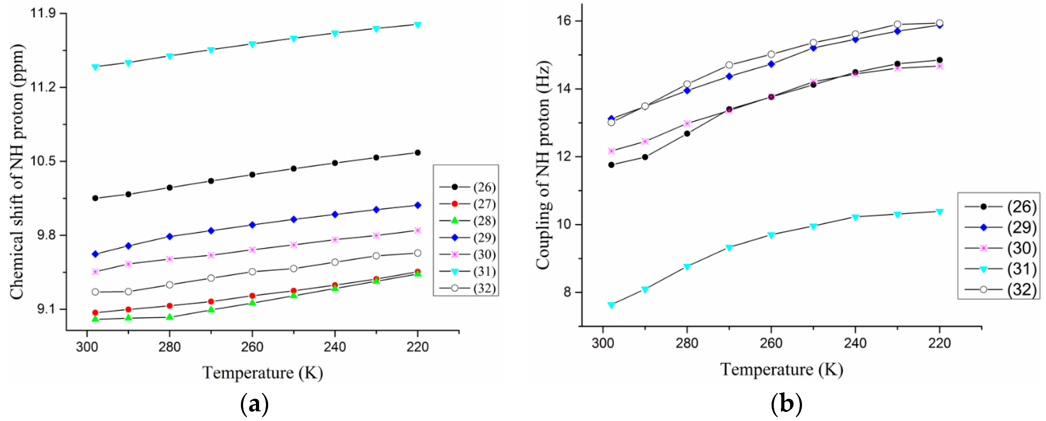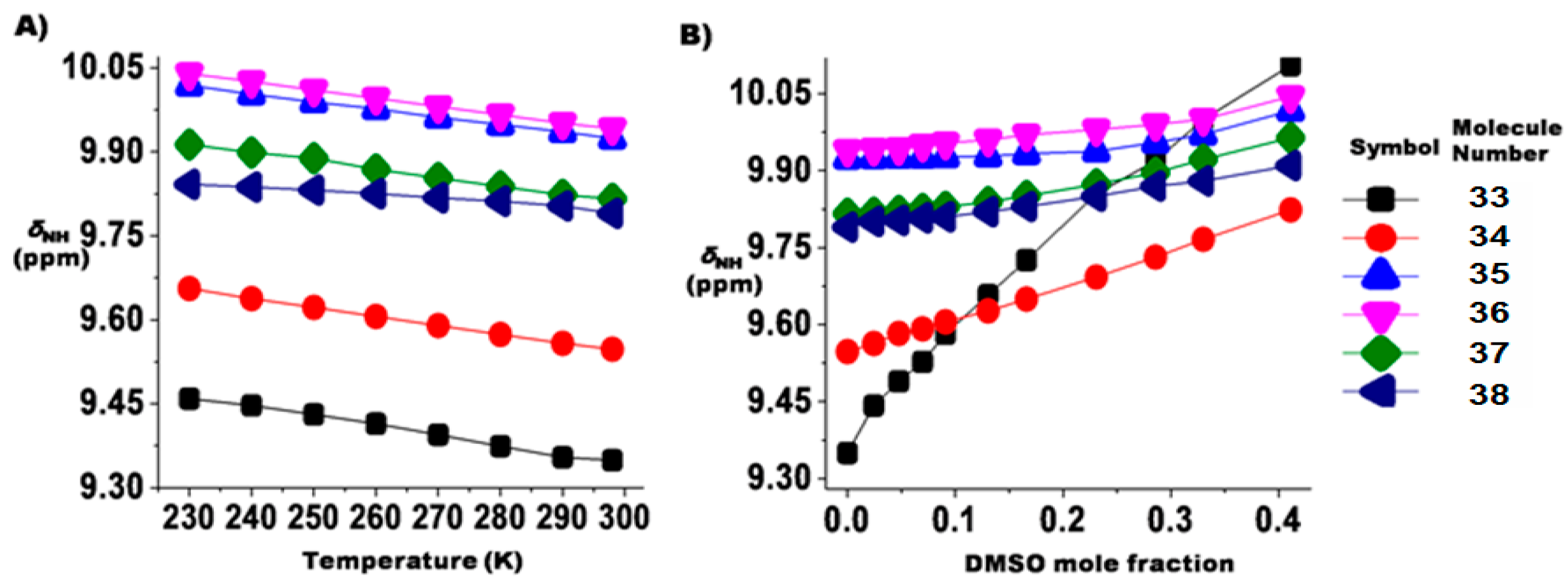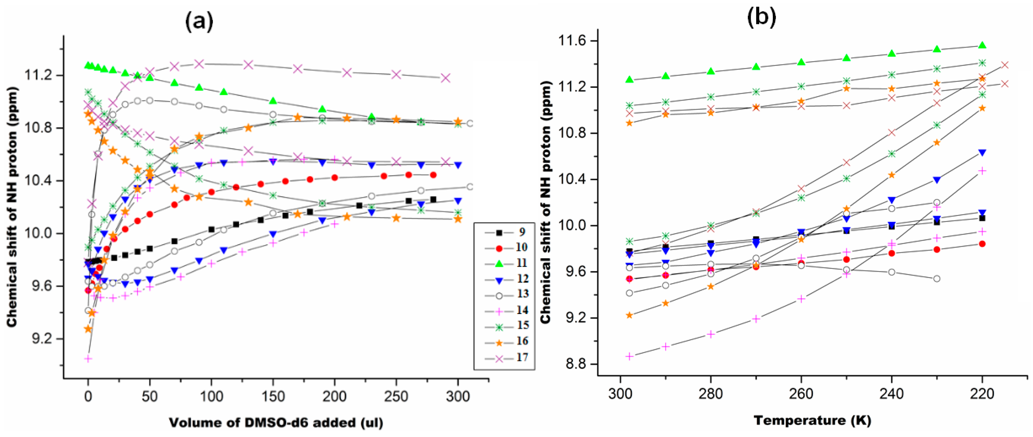- Martinez-Martinez, F.J.; Ariza-Castolo, A.; Tlahuext, H.; Tlahuextl, M.; Contreras, R. 1H, 13C, 15N, 2D and Variable Temperature NMR Study of the Role of Hydrogen Bonding in the Structure and Conformation of Oxamide Derivatives. J. Chem. Soc. Perkin Trans. 2 1993, 1481–1485. [Google Scholar] [CrossRef]