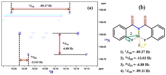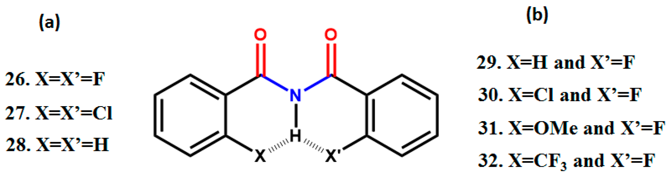 - Mishra, S.K.; Suryaprakash, N. Organic fluorine involved intramolecular hydrogen bonds in the derivatives of imides: NMR evidence corroborated by DFT based theoretical calculations. RSC Adv. 2015, 5, 86013–86022. [Google Scholar] [CrossRef]