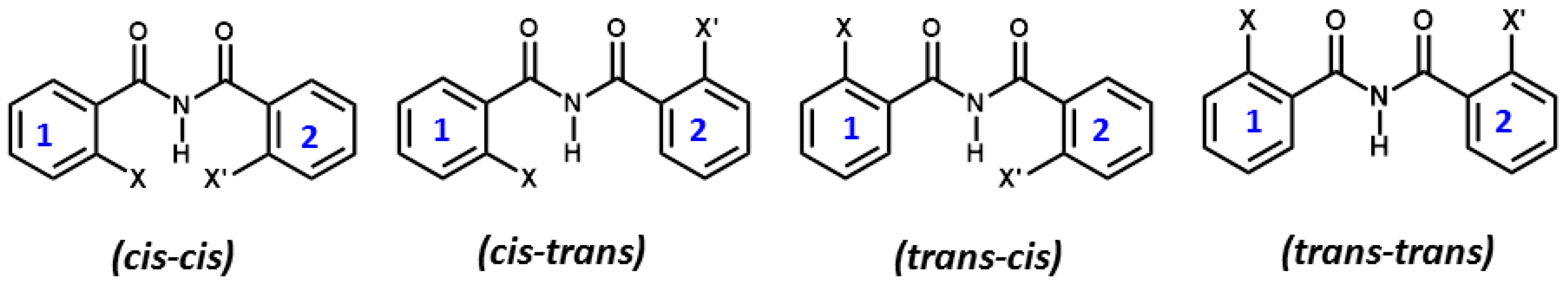 - Gellman, S.H.; Dado, G.P.; Liang, G.B.; Adams, B.R. Conformation-Directing Effects of a Single Intramolecular Amide-Amide Hydrogen Bond: Variable-Temperature NMR and IR Studies on a Homologous Diamide Series. J. Am. Chem. Soc. 1991, 113, 1164–1173. [Google Scholar] [CrossRef]