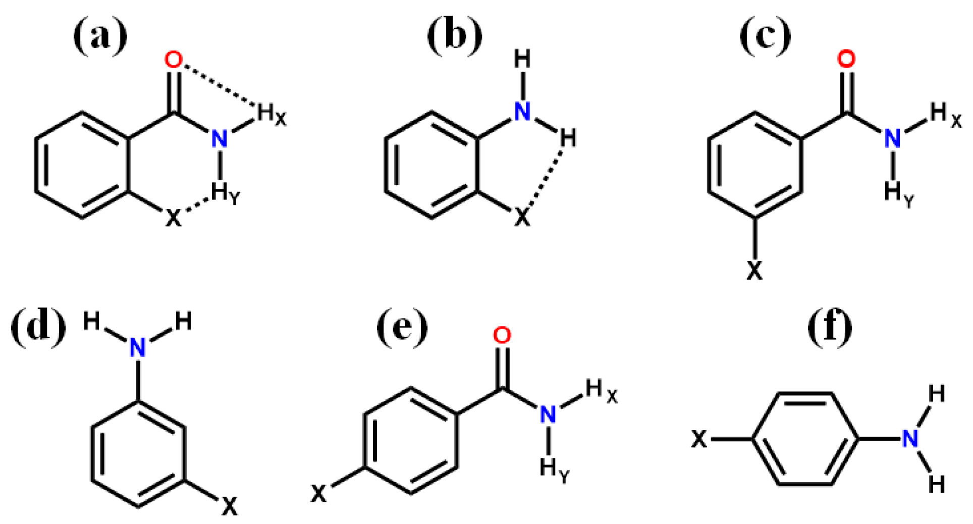 - Liu, Z.; Remsing, R.C.; Liu, D.; Moyna, G.; Pophristic, V. Hydrogen Bonding in ortho-Substituted Arylamides: The Influence of Protic Solvents. J. Phys. Chem. B 2009, 113, 7041–7044. [Google Scholar] [CrossRef] [PubMed]