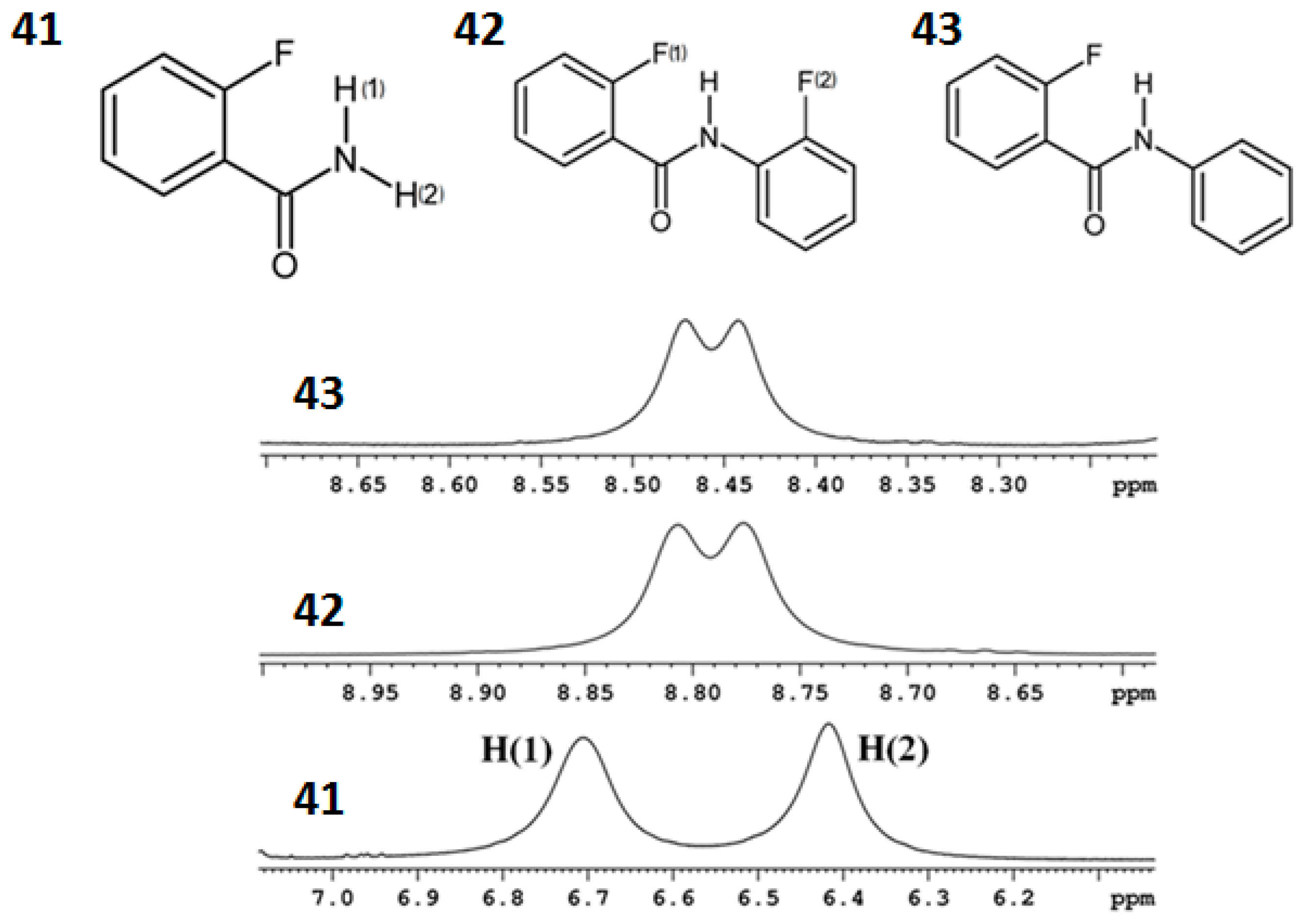 - Fritz, H.; Winkler, T.; Küng, W. Weitreichende Kernspin-Kopplungen in 2-Fluorbenzamiden II. [15N]-2-Fluorbenzamid. Helv. Chim. Acta 1975, 58, 1822–1824. [Google Scholar] [CrossRef]