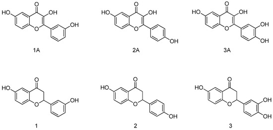 Figure 1. Chemical structures of the previously published flavonols [14] (1A3A) and of the flavanone analogues studied in the present work (13).