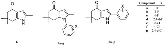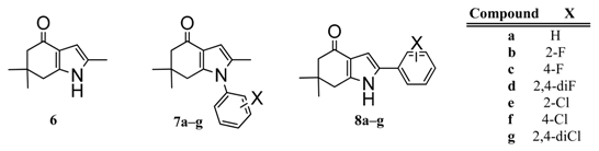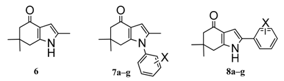 Indol-4-ones 6, 7a–g and 8a–g designed, synthetized and tested by Gonzalez et al. [6].