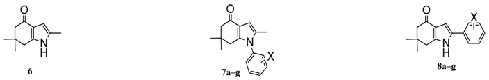 Dipole Moment of indol-4-one; series I compounds 6 and 7a–g and series II compounds 8a–g.