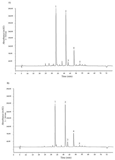 3.4.2. HPLC Analysis of Anthocyanins