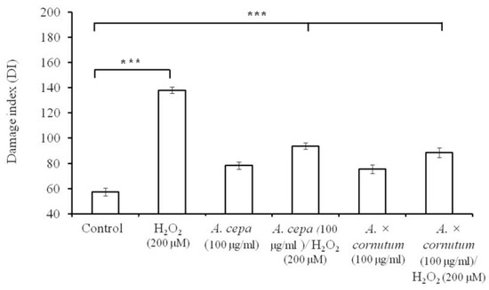| Antioxidant Assay | A. × cornutum (100 μg/mL) | A. cepa (100 μg/mL) |