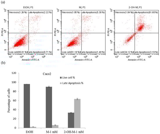 2.2. A Lethal Concentration of 2-Hydroxymelatonin Induces Apoptosis in Caco2 Cells