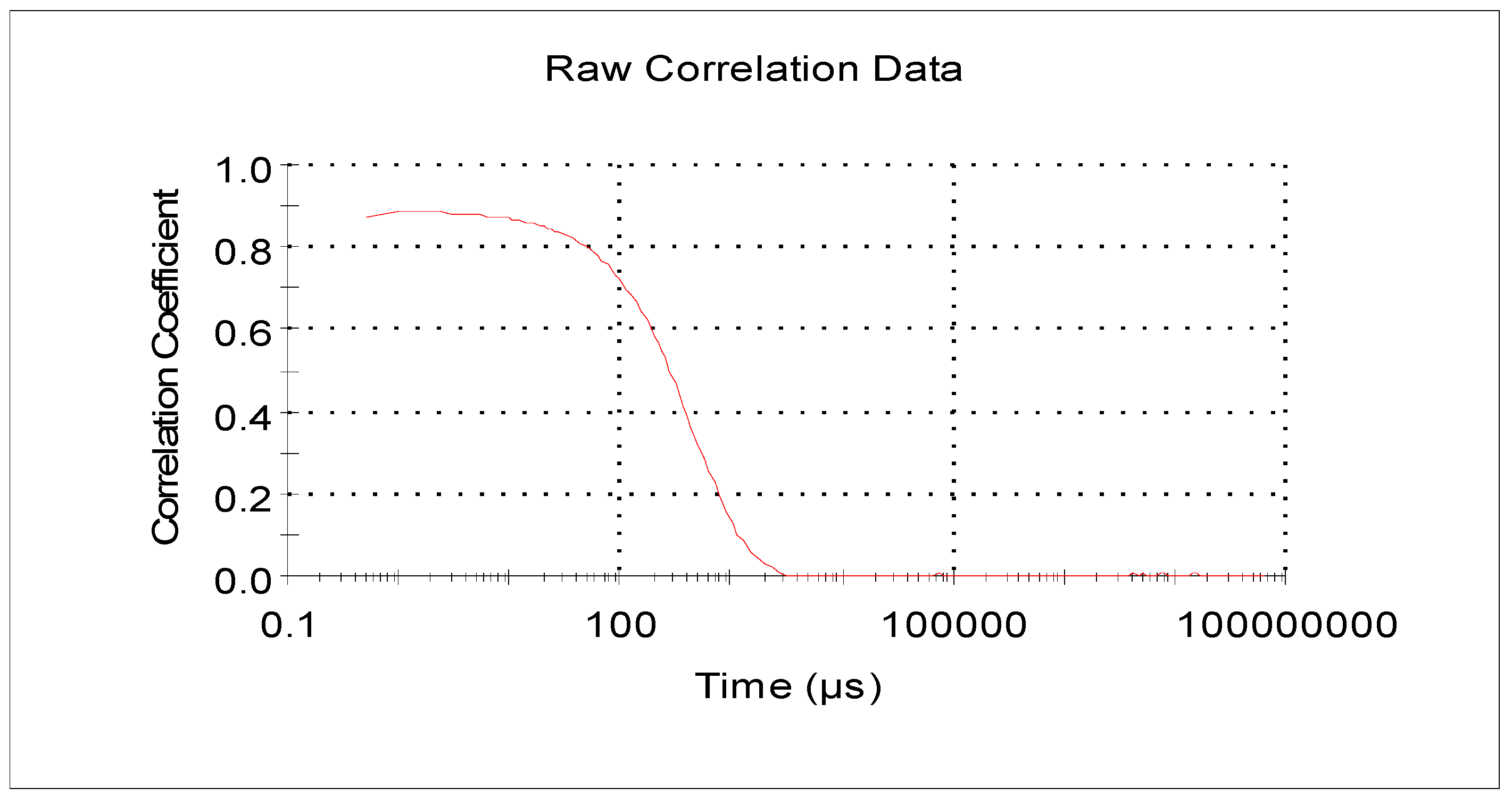 Figure 1 presents the correlation between scattered light intensity in the nanoliposome solution as a function of time, as well as the correlation of the scattered light signal intensity at time = t and at different time points. The following points were inferred from the correlogram: first, the correlation between light intensity and time decreased with time and eventually approached zero because of the random Brownian movement of the liposomal particles. Second, the smooth baseline at the end indicated that there was no sedimentation in the sample. Last, the correlogram also showed that the particles had relatively large sizes because the signal changed slowly and the correlation persisted for a longer time (levelling off period) before decaying [