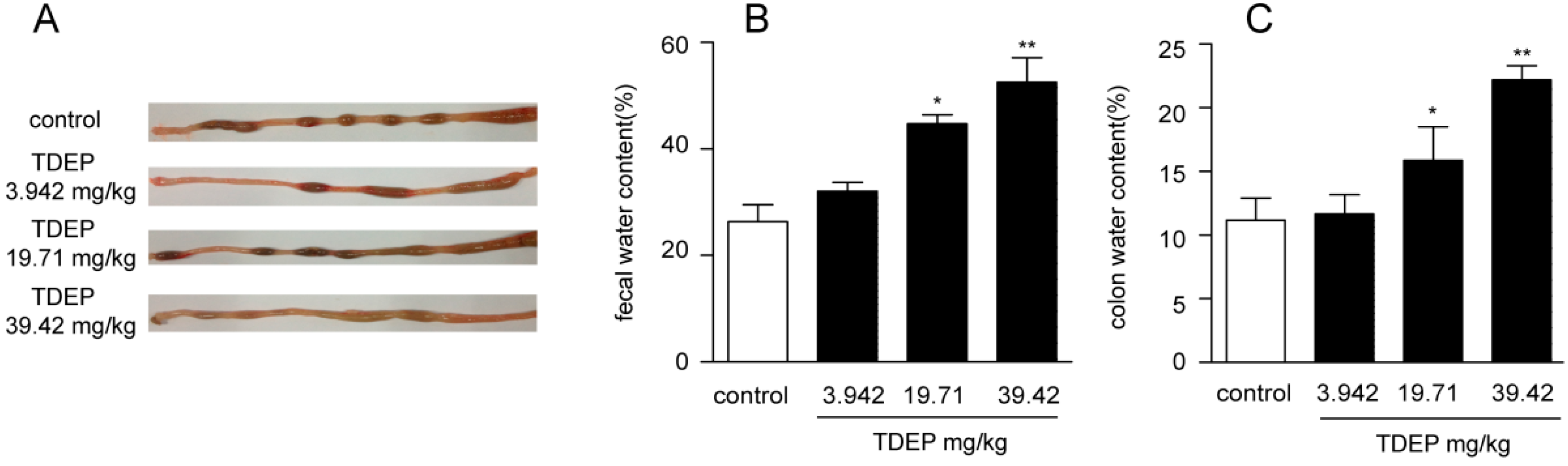 2.2. Effect of TDEP on Fecal and Intestinal Water Contents