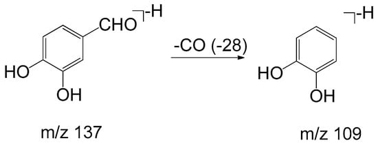 The proposed fragmentation pathway of protocatechuic aldehyde.