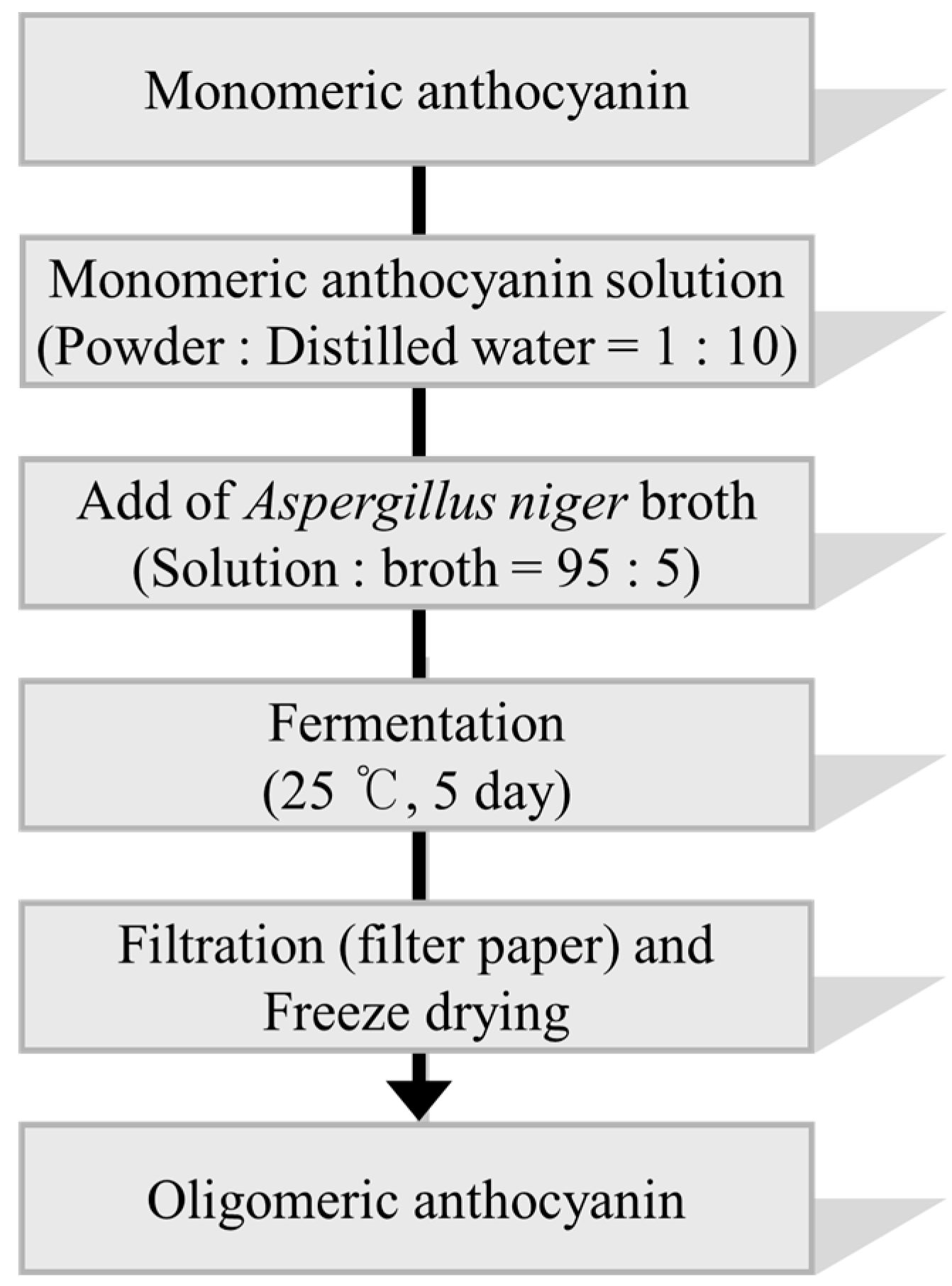 3.3. Synthesis of Oligomeric Anthocyanin by Fermentation Using Aspergillus niger