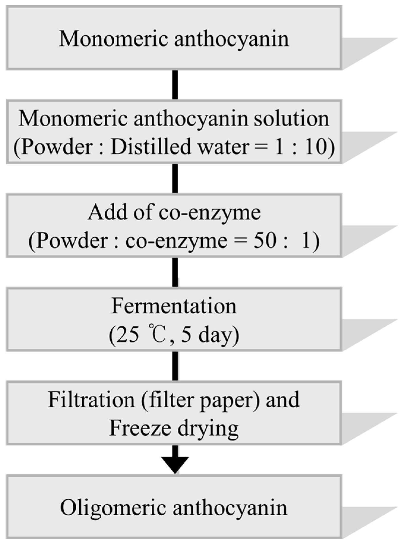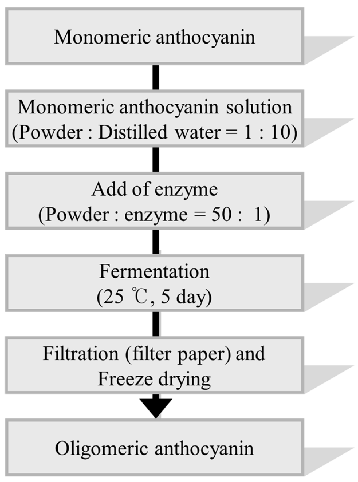 | Fermentation | Monomeric Anthocyanin (g) | Oligomeric Anthocyanin (g) | Yield (%) |