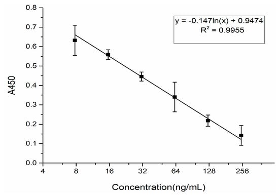 Immunoplates (96-well) were purchased from Corning Incorporated (Suzano, NY, USA). A coating antigen GA-BSA was produced in our laboratory. Skim milk powder for laboratory use only was purchased from OXOID Corporate (Beijing, China). Goat anti-mouse immunoglobulin conjugated to horseradish peroxidase (GaMIgG-HRP; whole molecule) was purchased from GE Healthcare (Chicago, IL, USA). Furthermore, 3,3,5,5-Tetramethylbenzidine (TMB) was purchased from Sigma-Aldrich, Co. (Beijing, China).