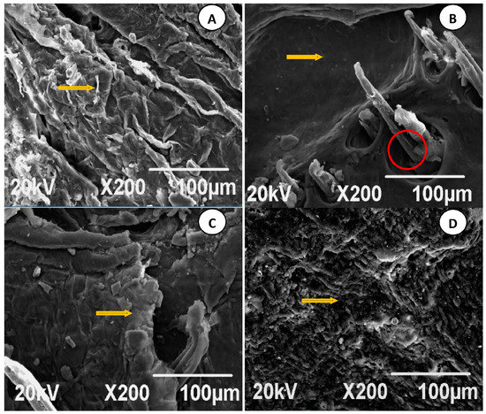 Compared with the control group, the SC ultrastructure after the chemical penetration enhancer treatment (Figure 13C,D) had loose arrangement, and a reduced gap, but this change was less clear than that of the FCT group. Furthermore, the intersecting degree of the keratinized structure was significantly reduced, as indicated by the yellow arrow.