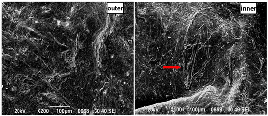 SEM images of the FCTH group: the inner and outer surfaces of SD rat skin.