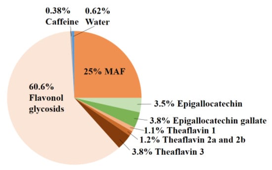 4.3. Quantitative Analysis of Caffeine, Catechins, and Theaflavins in E80