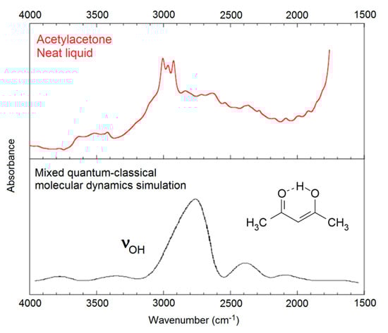 - Mavri, J.; Grdadolnik, J. Proton transfer dynamics in acetylacetone. A mixed quantum-classical simulation of vibrational spectra. J. Phys. Chem. 2001, 105, 2045–2051. [Google Scholar] [CrossRef]