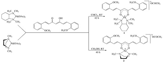 - Miklášová, N.; Mikláš, R.; Devínsky, F. Palladium Complexes of Curcumin and Its Analogues and Methods of Preparation of the Same. WO 2014175841 A1, 30 October 2014. [Google Scholar]