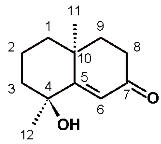 - Fraga, B.M.; Hernandez, M.G.; Mestres, T.; Terrero, D.; Arteaga, J.M. Nor-sesquiterpenes from Teucrium heterophyllum. Phytochemistry 1995, 39, 617–619. [Google Scholar] [CrossRef]