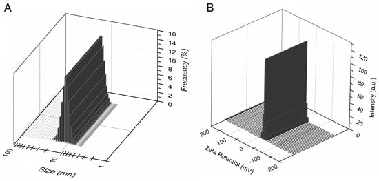 The colloidal feature of the resulted Zn:HAp (xZn = 0.1) nanogel solutions were examined by zeta potential and Dynamic Light Scattering (DLS). These characteristics are presented in Figure 2A,B. The zeta potential and particle sizes of Zn:HAp were determined from sol-gel coating solution after 30 min of ultrasonic agitation. Zeta potential is a measure of colloidal stability.