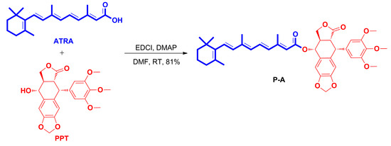 3.1.2. Preparation of All-Trans-Retinoic Acid-Podophyllotoxin Conjugate P-A