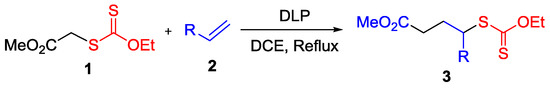 Radical addition of methyl 2-((ethoxycarbonothioyl)thio)acetate 1 with olefins 2.