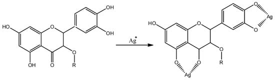 Proposed molecular binding of flavonoids (in EO) with silver ions during the reaction [59].