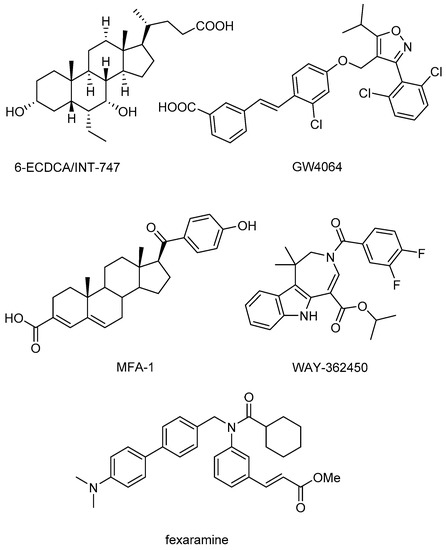 - Merk, D.; Steinhilber, D.; Schubert-Zsilavecz, M. Medicinal chemistry of farnesoid X receptor ligands: From agonists and antagonists to modulators. Future Med. Chem. 2012, 4, 1015–1036. [Google Scholar] [CrossRef] [PubMed]