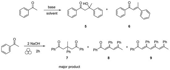- Although we have observed the various aldol self-condensation products under milling conditions, we were unable to isolate and purify these products through various separation methods, therefore we were unable to provide isolated yields. Characterization of these compounds were done through GC-MS and comparison to literature values.
