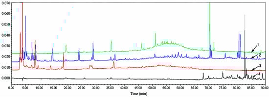 HPLC chromatograms (λ = 254 nm) of the fractions from P. baumii mycelium. 1: chloroform extract; 2: ethyl acetate extract; 3: butane extract; 4: petroleum ether extract.