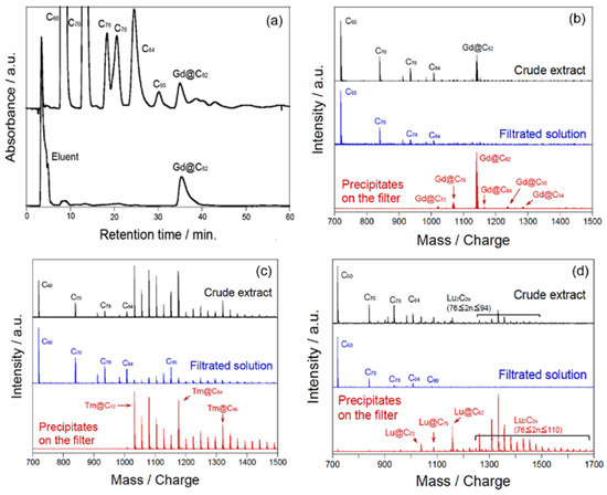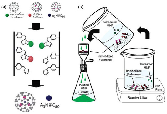- Raebiger, J.W.; Bolskar, R.D. Improved production and separation processes for gadolinium metallofullerenes. J. Phys. Chem. C 2008, 112, 6605–6612. [Google Scholar] [CrossRef]
