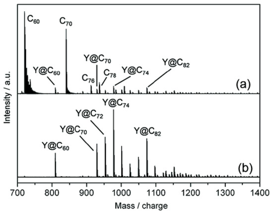 - Sun, B.Y.; Cui, R.L. The Macroscopic Preparation of Endohedral Metallofullerene. In Proceedings of the 225th ECS Meeting, Orlando, FL, USA, 11–15 May 2014. [Google Scholar]