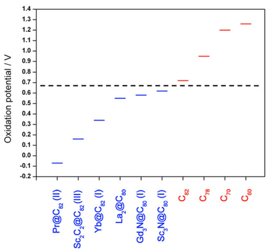 - Chaur, M.N.; Melin, F.; Ortiz, A.L.; Echegoyen, L. Chemical, Electrochemical, and Structural Properties of Endohedral Metallofullerenes. Angew. Chem. Int. Ed. 2009, 48, 7514–7538. [Google Scholar] [CrossRef] [PubMed]