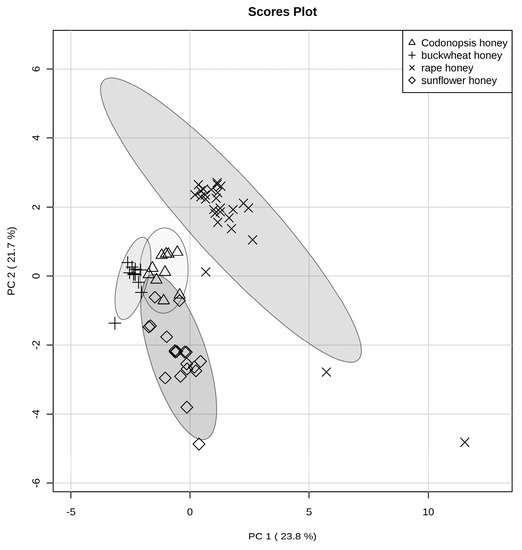 These results are in agreement with those of Zhao et al. who indicated that phenolic compounds could be used for the determination of floral origin [11]. And when conjunction with other physicochemical parameters, the predicted results will be more reliable by using multivariate statistical analysis [6,8,24].