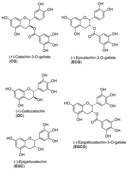 Epicatechin-3-O-gallate was purchased from Sigma (Deisenhofen, Germany). Samples of (+)-gallocatechin; (−)-epigallocatechin and (−)-epigallocatechin-3-O-gallate, were kindly provided by F. Petereit, IPBP (Institute of Pharmaceutical Biology and Phytochemistry) University of Münster; gallocatechin was originally isolated from Cistus albidus [60]; epigallocatechin and epigallocatechin-3-O-gallate were isolated from Cistus salvifolius [61]. If not stated otherwise, all other chemicals were purchased from Sigma (Deisenhofen, Germany).
