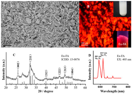 3.2. Characterization of Eu-FHA Nanorods