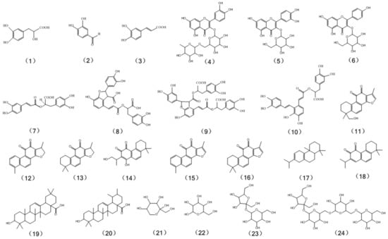 Chemical structures of 24 reference compounds in S. miltiorrhiza.