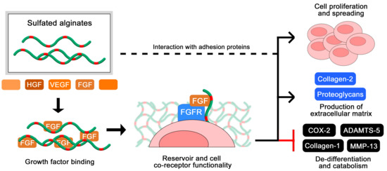 - Freeman, I.; Kedem, A.; Cohen, S. The Effect of Sulfation of Alginate Hydrogels on the Specific Binding and Controlled Release of Heparin-Binding Proteins. Biomaterials 2008, 29, 3260–3268. [Google Scholar] [CrossRef] [PubMed]