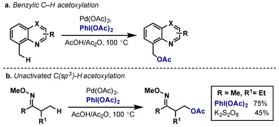 (a) Directed acetoxylation of benzylic C(sp3)–H bonds; (b) Directed acetoxylation of unactivated C(sp3)–H bonds.