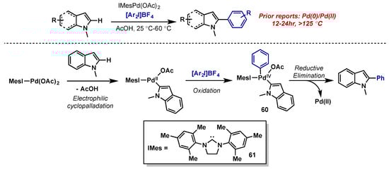 - Deprez, N.R.; Kalyani, D.; Krause, A.; Sanford, M.S. Room temperature palladium-catalyzed 2-arylation of indoles. J. Am. Chem. Soc. 2006, 128, 4972–4973. [Google Scholar] [CrossRef] [PubMed]