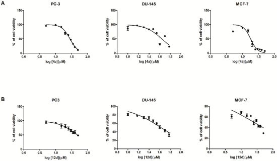 | 4a | 75.91 ± 1.39 | 88.72 ± 2.36 | 78.00 ± 3.89 | 31.76 ± 8.36 | 12.79 ± 0.53 | 14.51 ± 0.63 | 12.95 ± 0.58 | 11.32 ± 1.02 | 7.38 ± 0.53 | 17.95 |