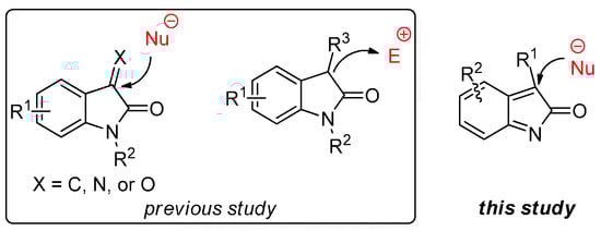 3,3′-Disubstituted oxindoles are embedded in the indole alkaloids and various clinical pharmaceuticals [1,2,3,4,5,6,7,8,9,10,11]. Significant efforts have been devoted by many research groups to the synthesis of 3,3′-disubstituted oxindoles. Among them, the most important and efficient approaches involve the use of electrophilic isatins/isatinimines and nucleophilic 3-monosubstituted oxindoles for the synthesis of 3,3′-disubstituted oxindoles (Figure 1) [2,3,4,5,12,13]. Despite these advances, however, the use of indol-2-ones (generated in situ from 3-halooxindoles) as electrophiles has been limited [14,15,16,17,18,19,20,21,22,23,24,25,26,27,28].