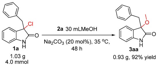 The alkoxylation of chloroxindole 1a on a gram scale.