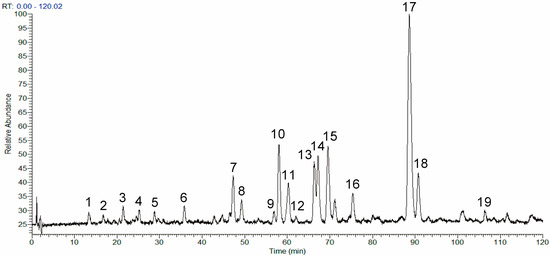 Total ion chromatogram profile of the phenolic fraction of Mentha haplocalyx (MHP).